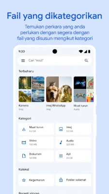 Files by Google bantu kosongkan ruang peranti, cari fail dengan pantas dan kongsi secara luar talian dengan selamat menggunakan Quick Share. Sandarkan fail ke awan dan lindunginya dengan kunci. Urus storan anda secara cekap.