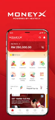Nikmati kemudahan luar biasa dengan satu platform serba lengkap yang mengintegrasikan segala keperluan kewangan anda. Tiada lagi perpindahan antara pelbagai aplikasi! Dengan **MoneyX**, anda boleh meneroka pilihan pelaburan dan insurans, memohon akaun simpanan, kad kredit atau pinjaman peribadi, mencari serta menilai kenderaan dan hartanah, mengurus profil kredit anda, mendapatkan akses kepada perkhidmatan perundangan, malah tambah nilai telefon bimbit anda. Semua ini kini boleh dicapai dengan beberapa sentuhan sahaja, memastikan anda memiliki kawalan penuh ke atas perjalanan kewangan anda.
