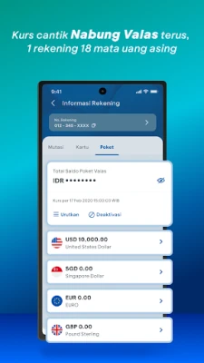 Selamat datang ke myBCA, hab perbankan digital menyeluruh daripada BCA yang direka untuk memperkasakan setiap transaksi kewangan anda. myBCA menggabungkan semua keperluan perbankan anda ke dalam satu platform yang lancar, membolehkan anda menguruskan akaun, membuat pembayaran, dan merancang masa depan kewangan anda dengan mudah. Dengan hanya satu ID BCA, akses penuh kepada pelbagai kemudahan perbankan kini di hujung jari anda, tersedia pada bila-bila masa dan di mana sahaja. Ia adalah penyelesaian tunggal untuk semua aspirasi perbankan digital anda, menjadikan setiap langkah kewangan lebih ringkas dan cekap.